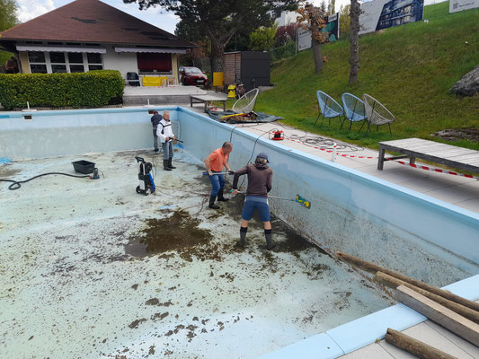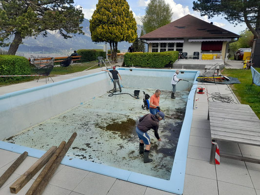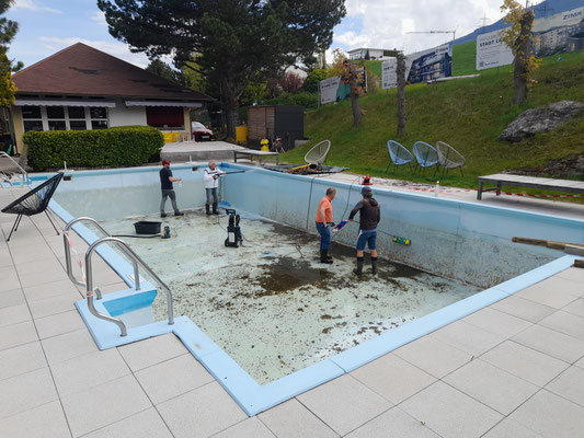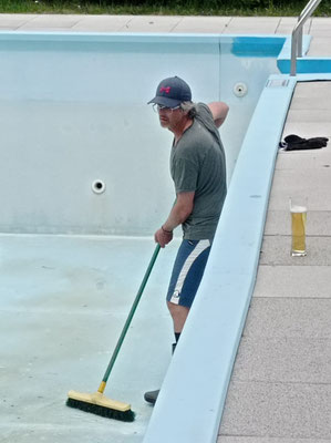Ein paar abschließende Handgriffe sind noch nötig, um den Pool in den gewohnten Top-Zustand zu bringen. Wir sind zuversichtlich, dass die Badesaison schon bald starten kann.