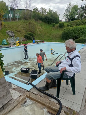 am letzten Aprilwochenende haben einige engagierte Mitglieder – Stefan, Klaus, Werner und Tobi – den Pool mit großem Einsatz für die Sommersaison vorbereitet. Wie jedes Jahr war es eine schweißtreibende, schmutzige Aufgabe. Doch dank starkem Teamgeist, reibungsloser Zusammenarbeit und bemerkenswerter Ausdauer konnte das Projekt „Poolstart 2025“in rekordverdächtiger Zeit nahezu badebereit abgeschlossen werden.